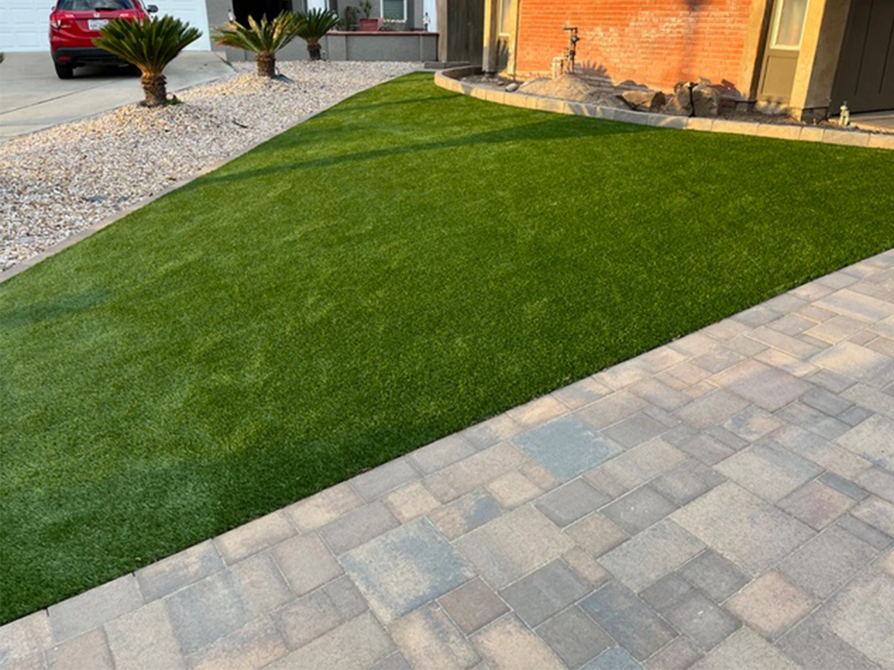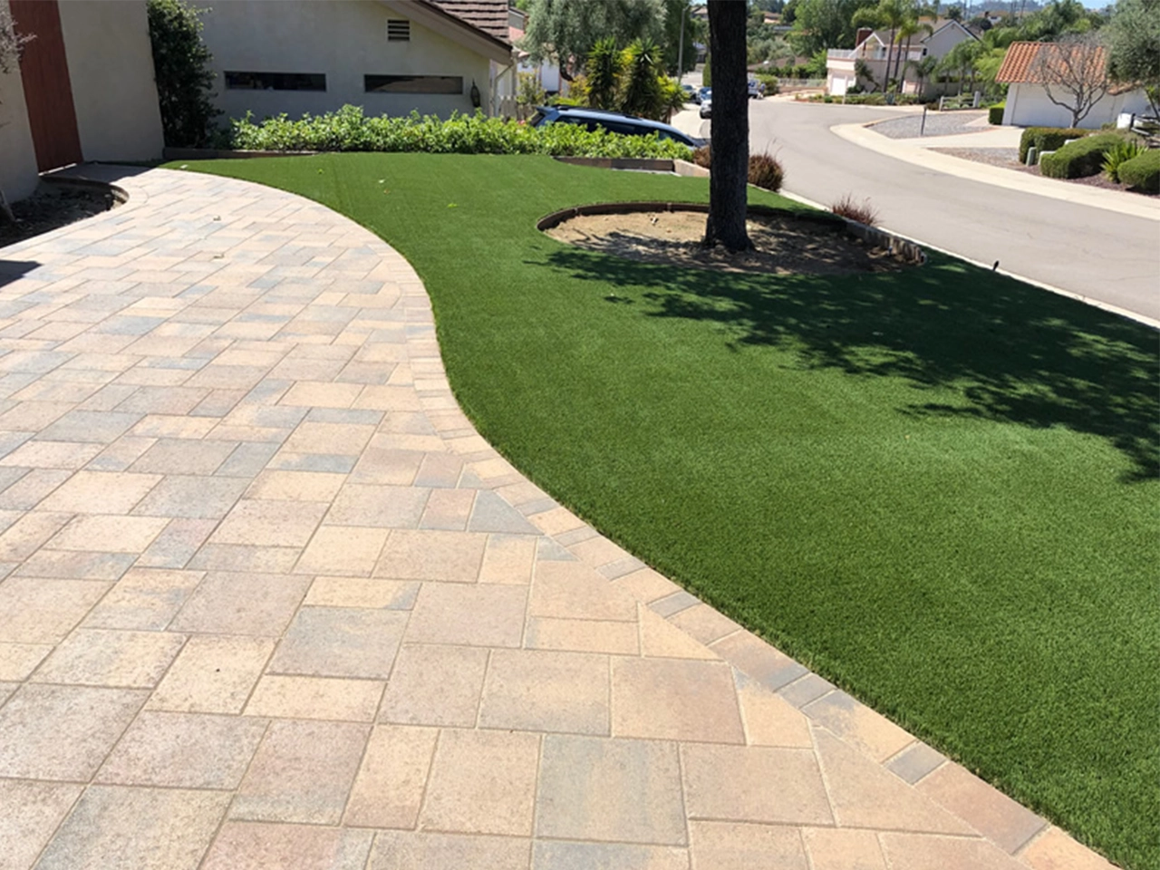 Drought-tolerant and sustainable, turf and pavers landscaping reduces water use while minimizing upkeep. No fertilizer. No trimming. No guesswork. Just clean lines and a lush, green finish without the hassle.