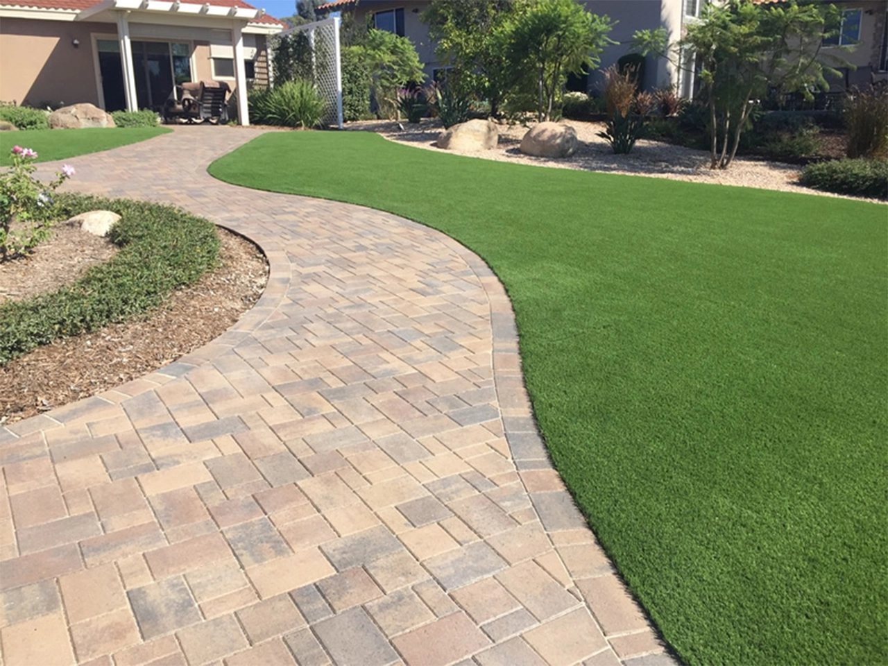 Mixing low-maintenance turf with durable pavers creates beautiful, functional outdoor spaces. Here’s what our clients ask most often about turf and paver installations. For personalized help, call 760-623-0066.