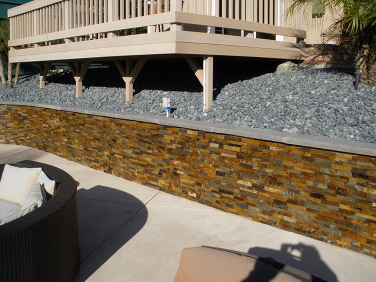 Yes! We work with a variety of concrete wall blocks and stone veneer options that can coordinate perfectly with your concrete pavers, walkways, patios, or pool decks for a cohesive, upscale look.